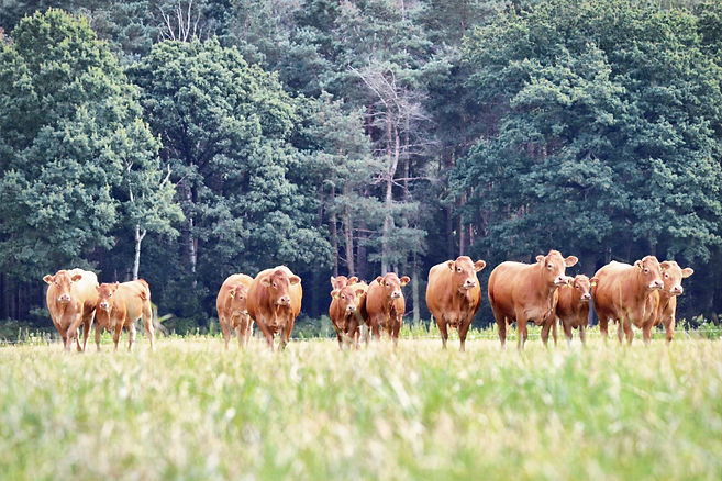 Unsere Limousin-Rinder leben in der Südheide auf weitläufigen Weiden – fernab von Massentierhaltung und Hektik. In natürlicher Umgebung wachsen sie artgerecht und stressfrei auf: mit viel Bewegung, frischer Luft und einer kräuterreichen Ernährung im Sommer sowie in einem großzügigen, liebevoll gestalteten Stall im Winter.